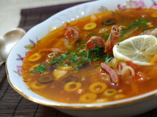 Сборная мясная солянка подойдет для сытного и вкусного обеда.